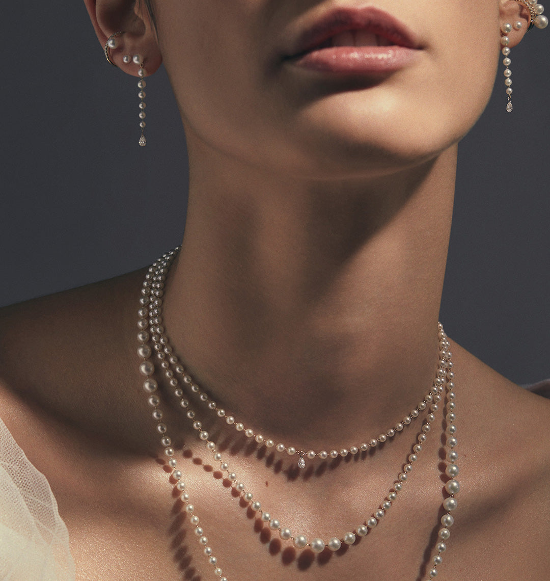 SBN265 Sea of Beauty. Diamond Pear and Floating Pearl Necklace