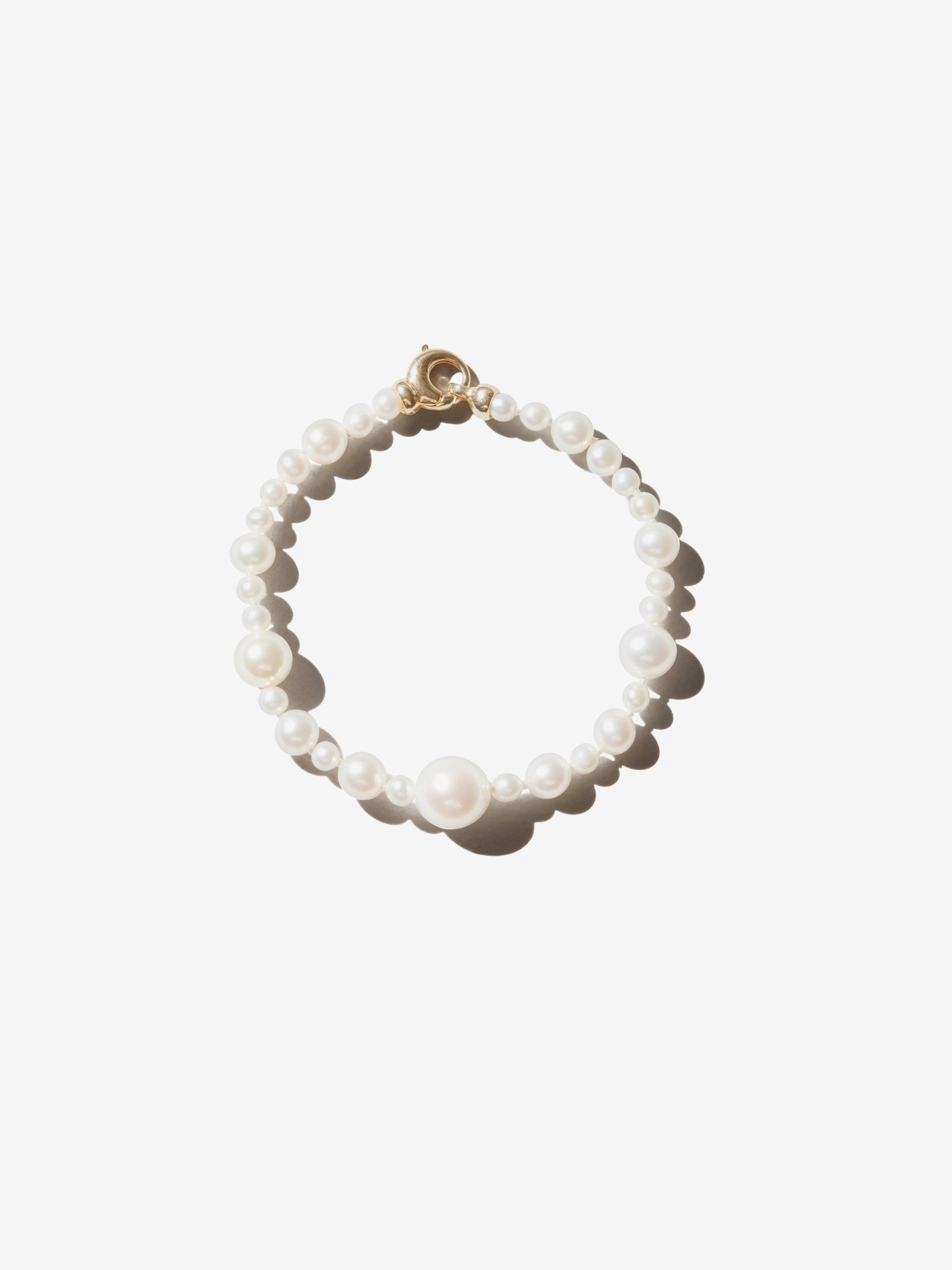 Mizuki designed a fantastic pearl pattern for an organic and striking bracelet. The sculptural hook adds a beautiful accent.