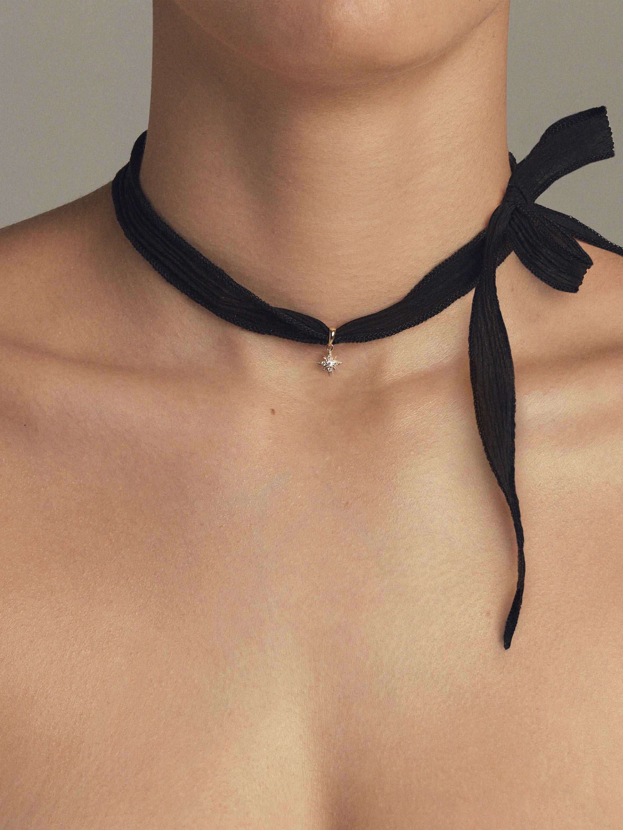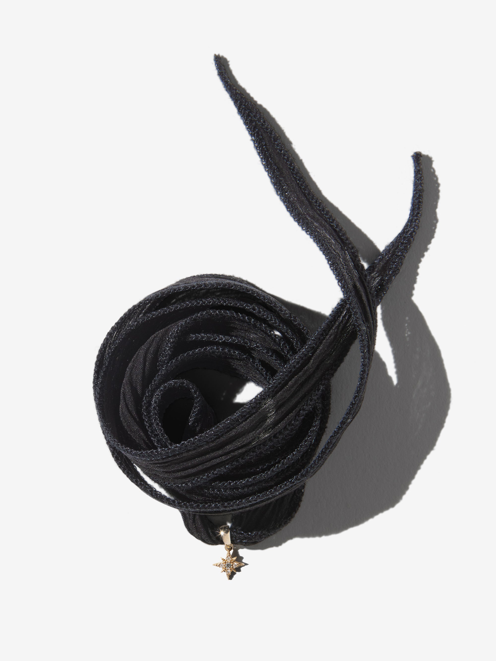 Only Mizuki creates such style and fashion. Casual yet sophisticated black silk combines with a small diamond star. Can be worn as a necklace or bracelet.